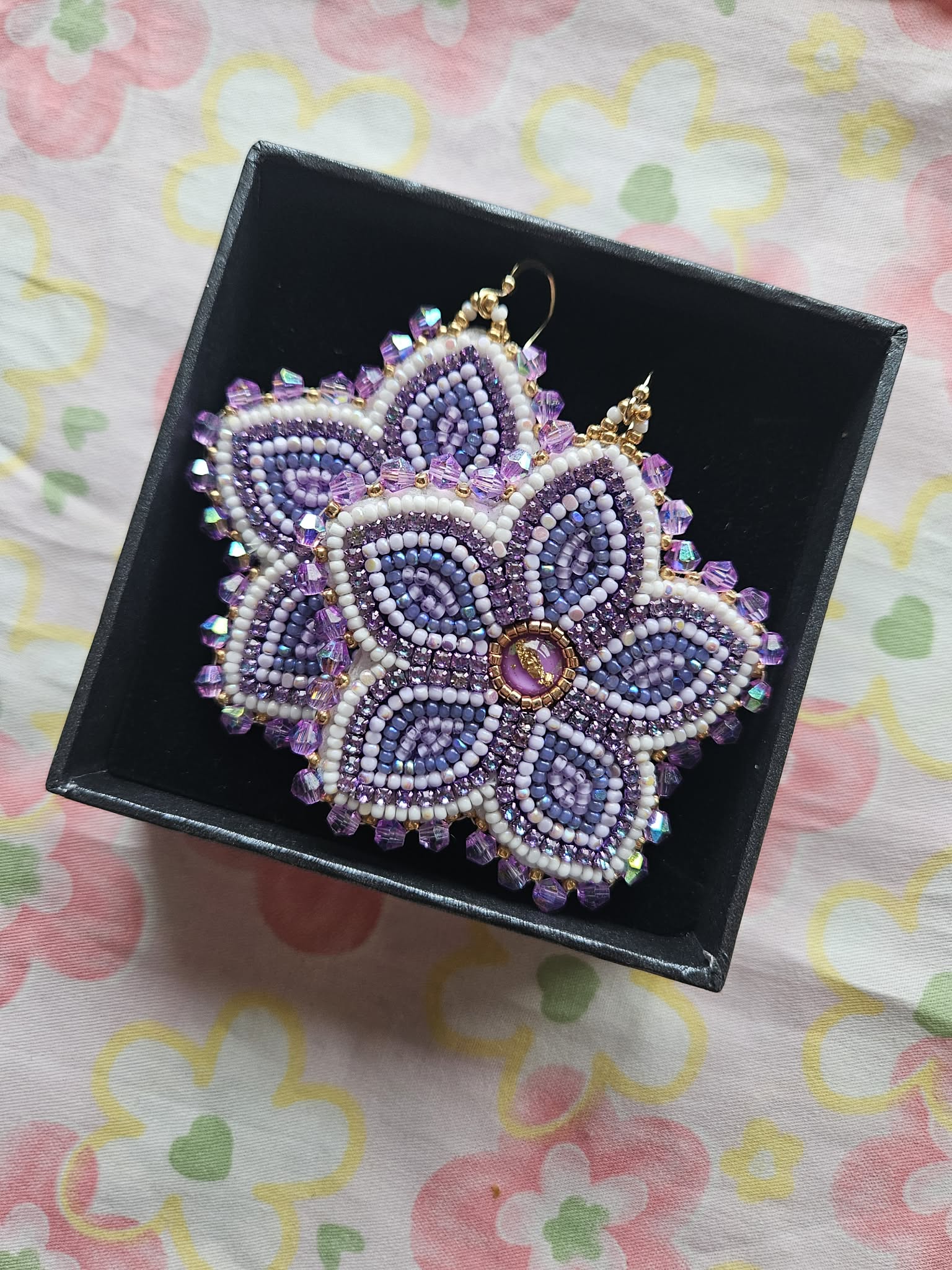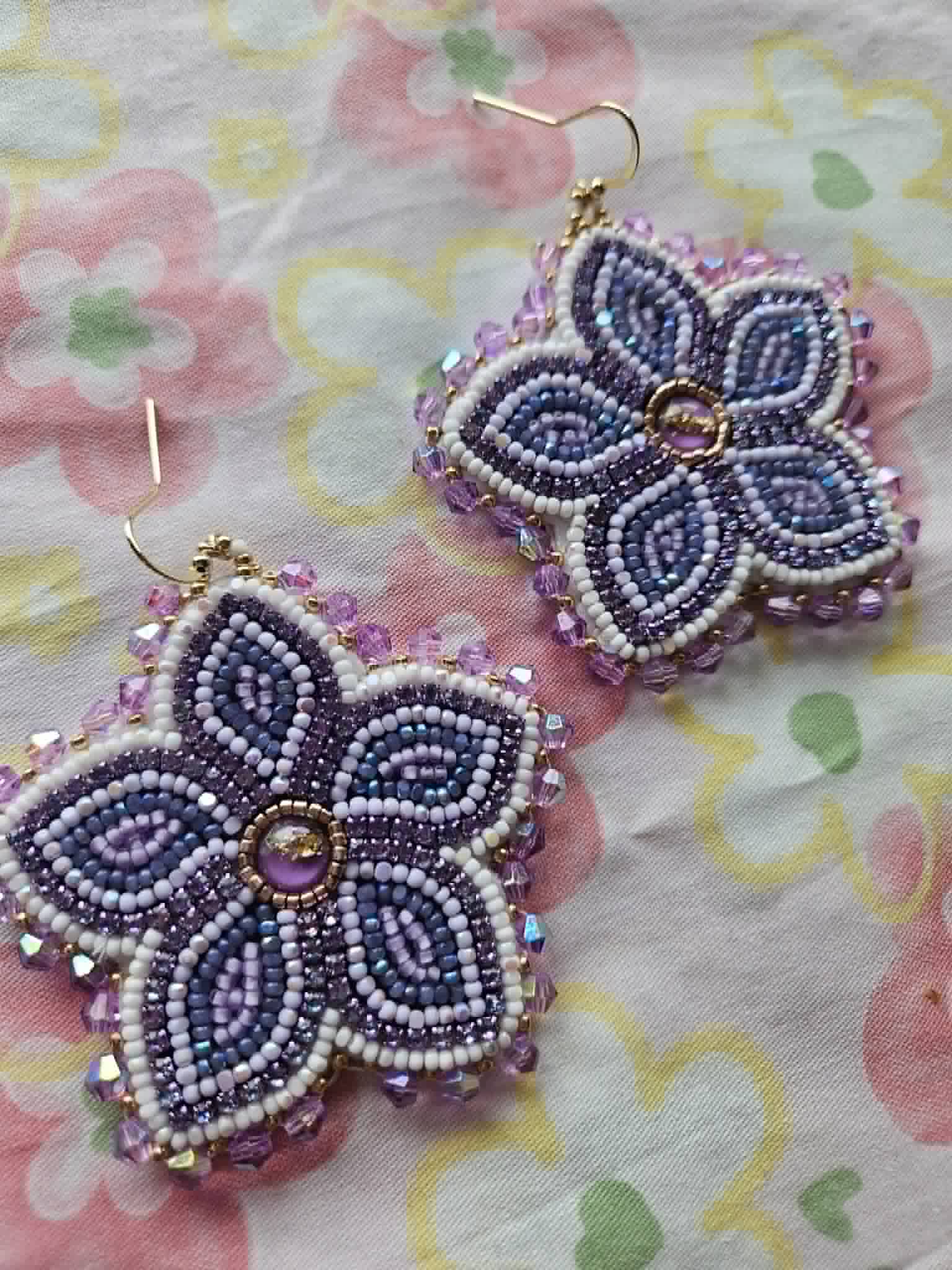 Handmade beaded Métis floral earrings with a little sparkle.